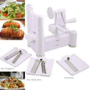 Home / Vegetable & Fruit Slicers / Tri-Blade Spiral Vegetable and Fruit Slicer 3 in 1 / Spiral Vegetable Slicer Cutter Tri Blade Fruit 2